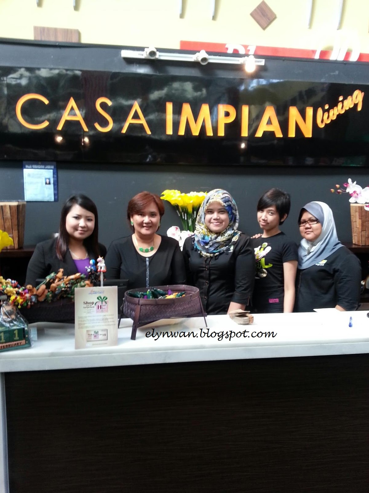 Ni gambar kami dengan bos. Teka la saya mana satu. Kalau tak dapat teka, sentap 3 jam! Haha. Senang2 datang la jenguk outlet kami ye? Kat tengah2 hall area departure tu. Staff kami pun ramah-ramah belaka. Comel pulak tu (ehem).